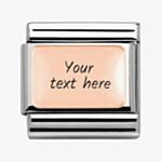 A perfect piece for adding subtle colour to your Nomination Classic bracelet. Crafted from stainless steel and 9 carat rose gold in a plain tile design, worn as standard or customised with a personal message. Treat yourself or a loved one today. Engrave the charm to add a personal touch.